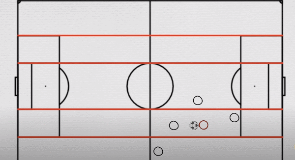 리버풀은 넓게 공격하는 경향이 있고, 그래서 그들의 역습공격도 그러니까 하프스페이스와 측면에서 발생한다. 리버풀은 상대측면을 제어하기 위해, 하프스페이스에서 매우 컴팩트하고 공격적으로 압박한다. 8번과 풀백들이 수직적으로 움직일 수 있는 높은 자유도가 허용되면서 압박이 가능하다. 더욱이 상대팀이 측면에서 볼을 소유했을 때, 그들에게는 오직 두가지 방법만이 존재한다.
