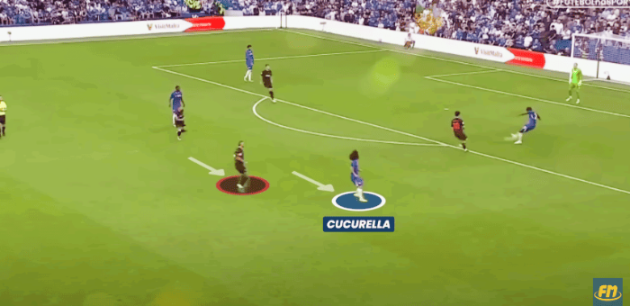 매우 유동적인 롤을 소화하는 쿠쿠렐라와 같은 선수들 덕분에, 카이세도가 원 홀딩 미드필더로 활약할 수 있었고, 첼시는 공격시 더 많은 선수를 가담시킬 수 있었다. 하지만 더 미묘한 변화 중 하나는 첼시가 볼소유를 유지하길 원하는 곳에도 영향을 미쳤다.