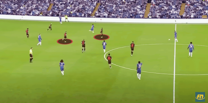 이것은 2:0으로 이긴 AC밀란 전에서 완벽히 드러났다. 첼시는 빠르게 전진했고, 네투가 왼발로 컷인 플레이를 하면서, 다섯 명의 선수가 박스를 향해 공격 태세를 갖췄다. 그러면서 리스 제임스가 오른쪽 측면에서 오버래핑했다.공격에 가담하는 이 모든 선수들은 위협구역에서 지속적으로 수적우위를 만든다. 이것은 상대팀이 그들의 과부하를 막고 빠른 움직임을 막는데 굉장히 어렵게 만든다.