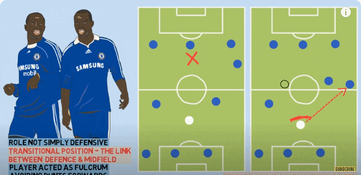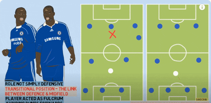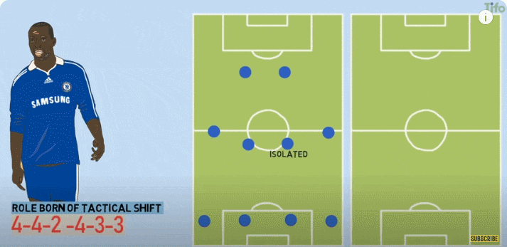 만약에 그 선수가 마케렐레처럼 기술적으로 훌륭하고, 피지컬적으로 강하다면, 상대팀 미드필더를 포지션 바깥으로 꾀어낼 수 있고, 그러면서 더 공간을 만든다. 그리고 결정적으로, 이 롤은 4-3-3 하에서 전술적 요구에 의해 기인한 것이다.